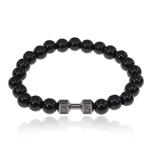 Браслет Гантель, черный агат, 8мм BJBS-409