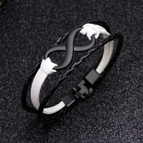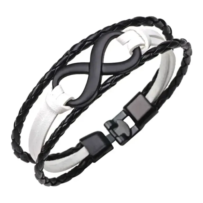 Кожаный браслет Бесконечность, 20см, цвет черно-белый BS368-02
