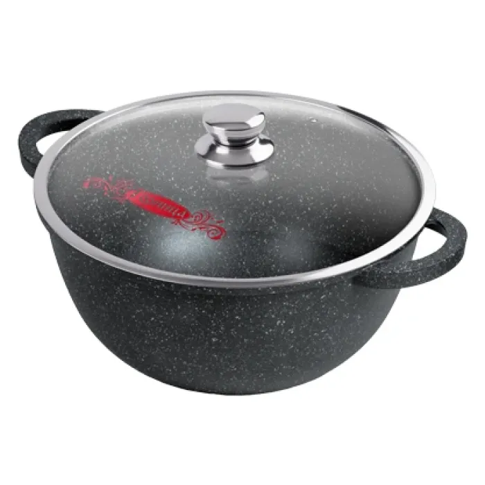 Казан с антипригарным покрытием литой 6 л 28 см стеклянная крышка Гранит ТМ Горница