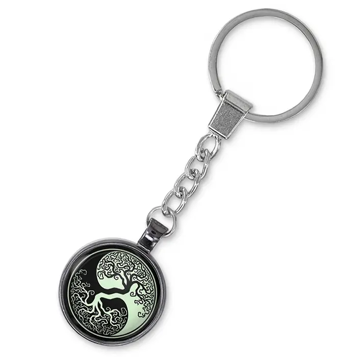 Брелок для ключей из бижутерного сплава с изображением Дерева жизни под защитным стеклом. Имеет функцию свечения в темноте.