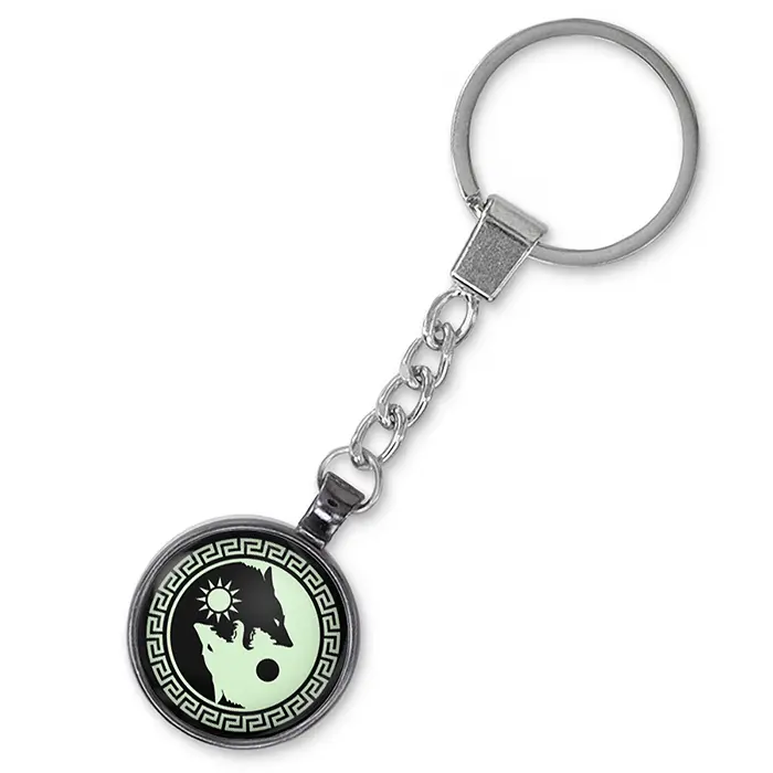 Светящийся брелок с символом волков Инь-Ян. Изготовлен из бижутерного сплава с покрытием под сталь.
