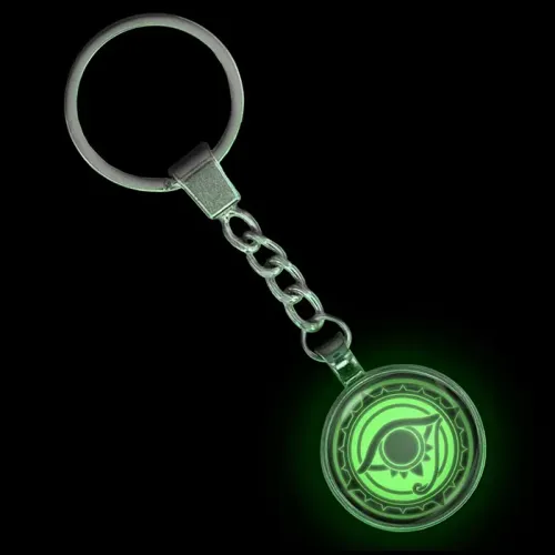 Светящийся брелок с символом Ока провидения. Изготовлен из бижутерного сплава с покрытием под сталь, изображение находится под защитным стеклом.