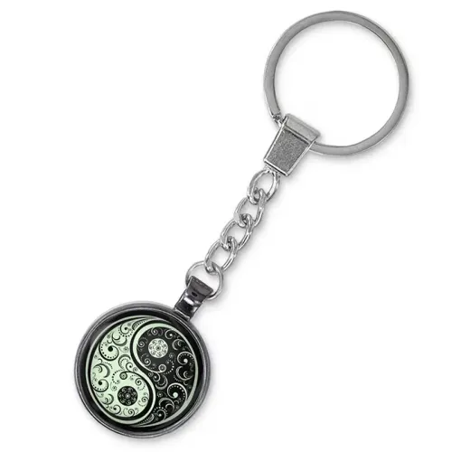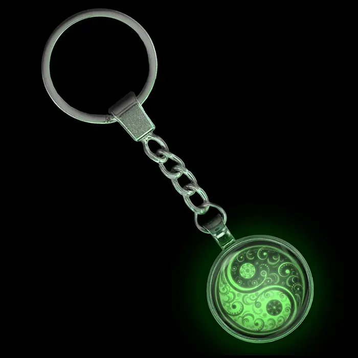 Брелок с символом Инь-Ян из бижутерного сплава со светящимся элементом.