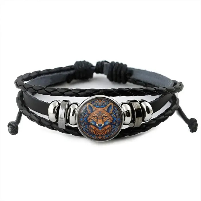Кожаный браслет с изображением лисы. Материал: синтетическая кожа, металл, стекло. Изображение диаметром 20 мм защищено выпуклой стеклянной линзой.