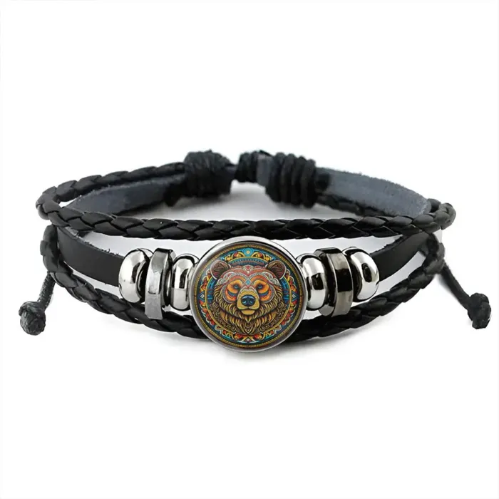 Кожаный браслет с изображением медведицы под стеклянной линзой.