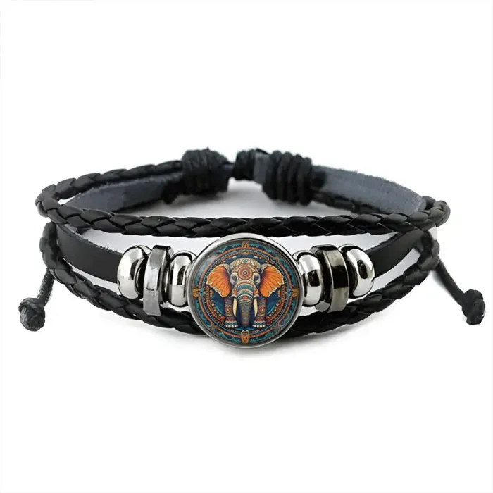 Кожаный браслет с декоративным элементом в виде слона.