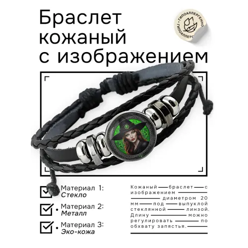 Размеры и комплектация: Диаметр изображения 20 мм. Браслет регулируемого размера. Упаковка: прозрачный пакет.