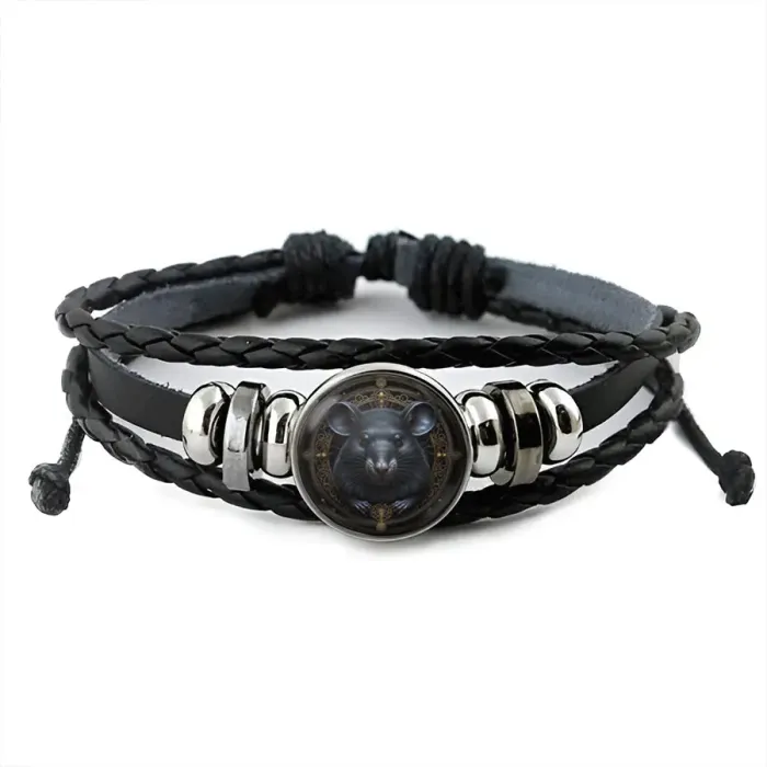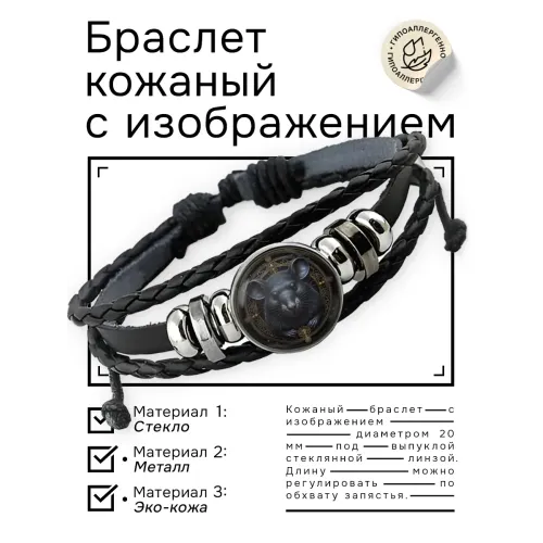 Кожаный браслет с декоративным элементом под стеклянной линзой.