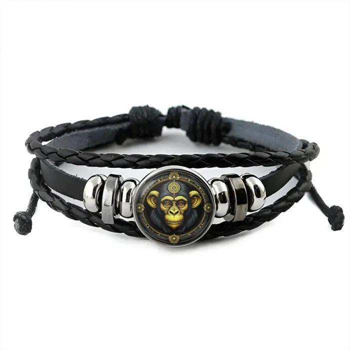 Кожаный браслет с декоративным элементом в виде обезьяны.