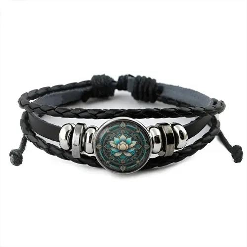 Кожаный браслет с декоративным элементом в виде цианового лотоса.