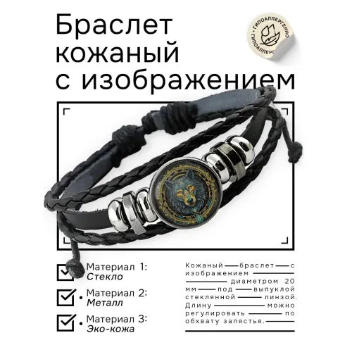 Размеры и комплектация: Диаметр изображения 20 мм. Браслет имеет регулируемый размер. Упаковка — прозрачный пакет.