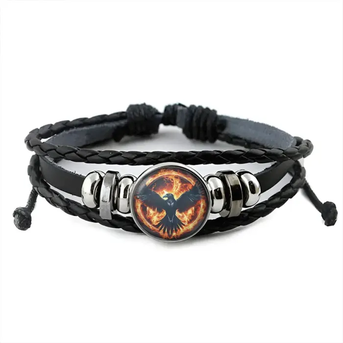 Кожаный браслет с декоративным элементом в виде Огненного ворона.