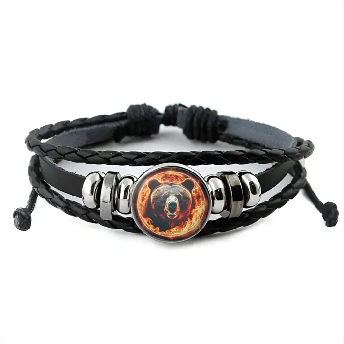 Кожаный браслет Огненный медведь BSK-1118