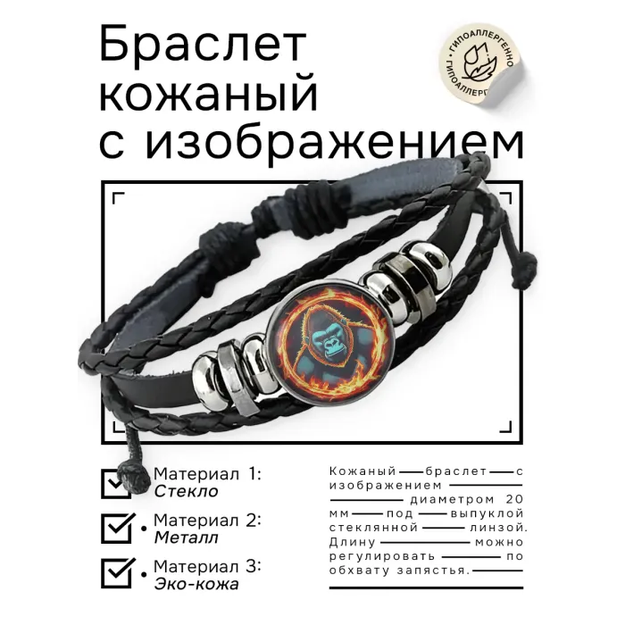 Кожаный браслет Огненная горилла BSK-1120