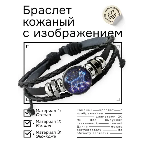 Кожаный браслет Звездная кошка BSK-1138