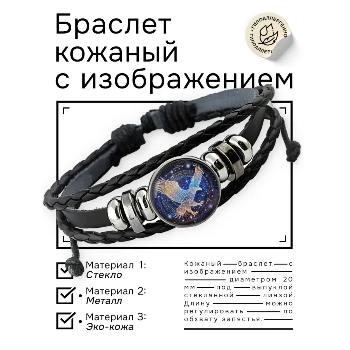 Размеры и комплектация: Браслет с регулируемым размером. Упаковка: прозрачный пакет.