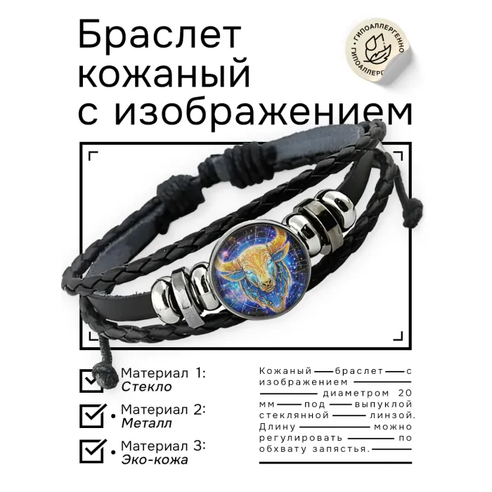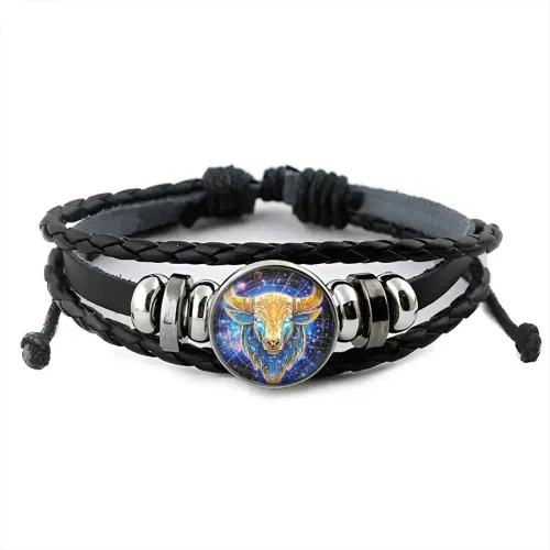 Кожаный браслет с символом Тельца, сувенирный аксессуар.
