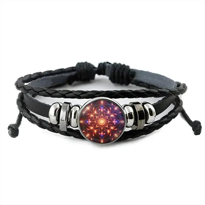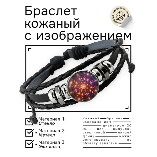 Кожаный браслет с изображением под выпуклой стеклянной линзой.