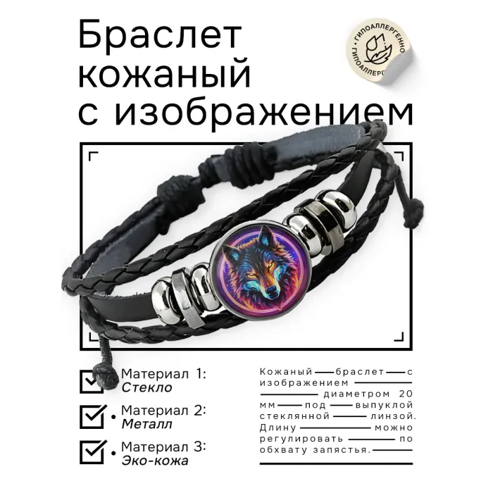 Кожаный браслет с изображением волка — это стильный аксессуар, который станет отличным дополнением к любому образу. Символизируя силу и независимость, волк в культуре многих народов олицетворяет верность и дружбу. Основные особенности: