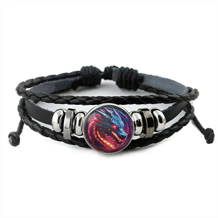 Кожаный браслет Дракон в профиль неон BSK-1236