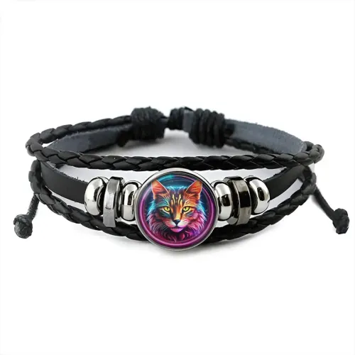 Кожаный браслет Кот неон BSK-1241