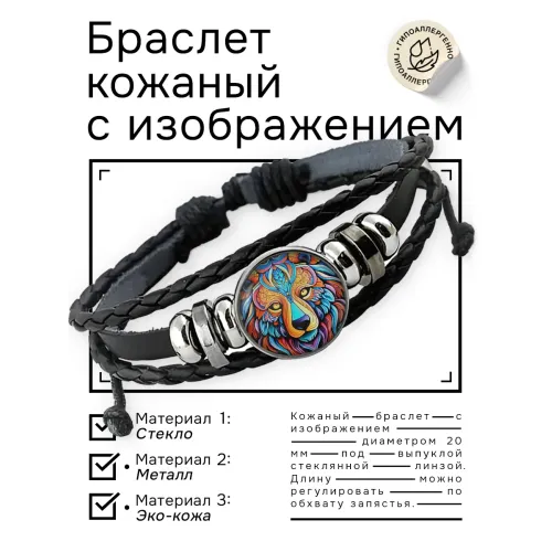 Размеры и комплектация: Диаметр декоративного элемента 20 мм. Браслет регулируемый. Упаковка: прозрачный пакет.
