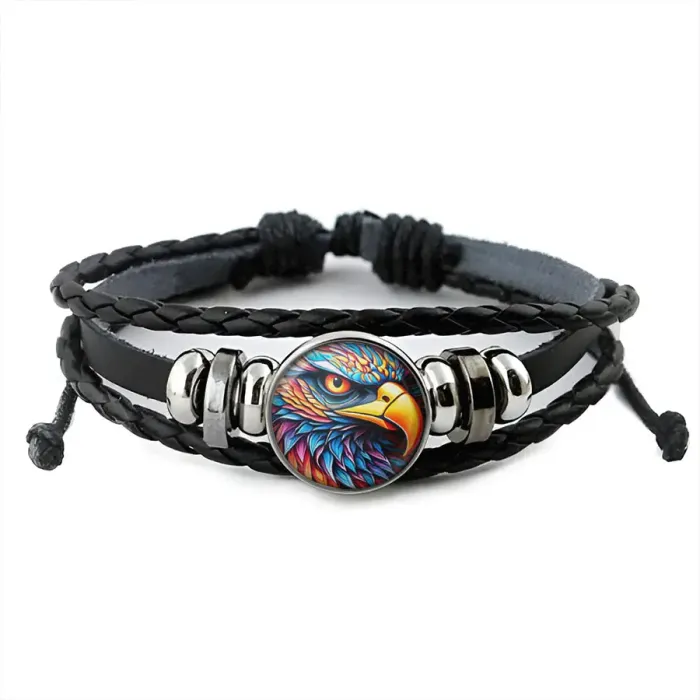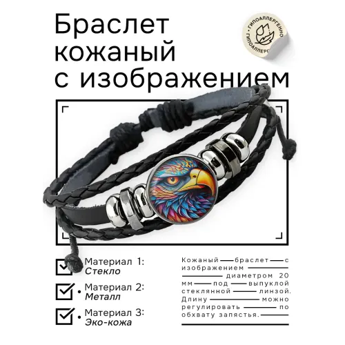 Кожаный браслет с декоративным элементом в виде орла.