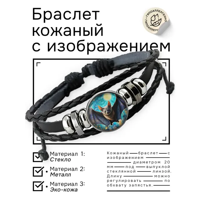 Кожаный браслет Летучая мышь звездная ночь BSK-1287