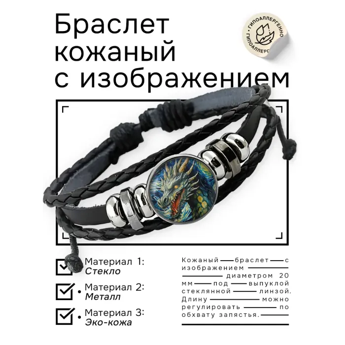 Кожаный браслет Дракон звездная ночь BSK-1295
