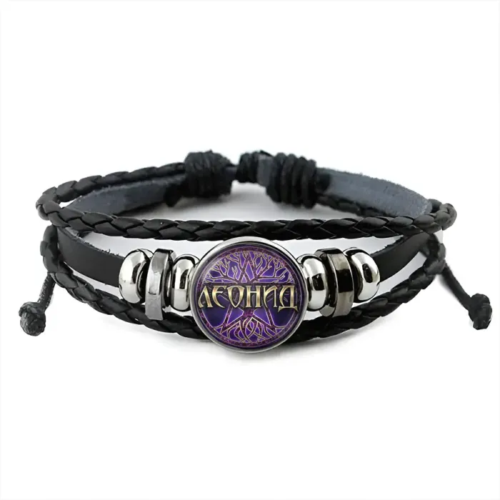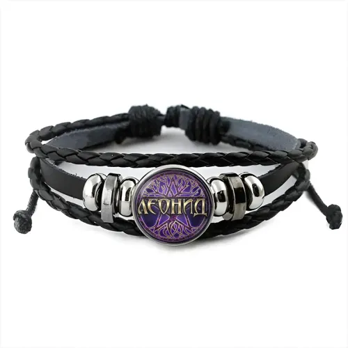 Именной кожаный браслет Леонид BSK-2032