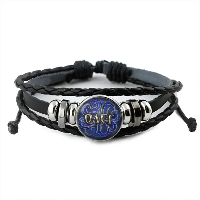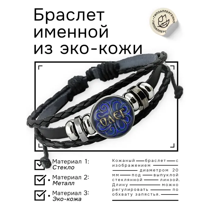 Именной кожаный браслет с изображением под выпуклой стеклянной линзой.