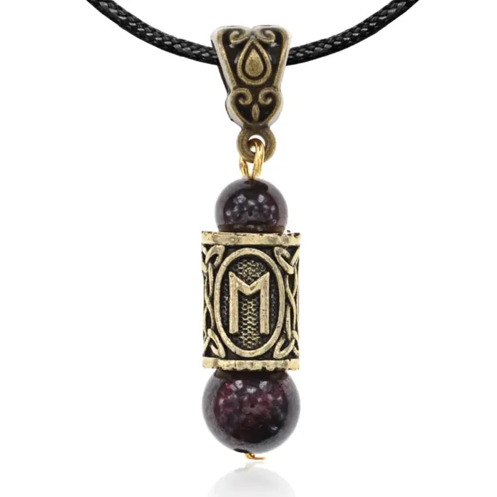Кулон-амулет с руной Эваз (Здоровье, путешествия, любовь, успех), гранат KULZ-05