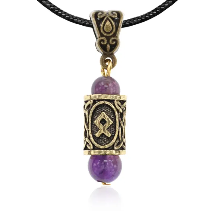 Кулон-амулет с руной Одал из бижутерного сплава и натурального аметиста.