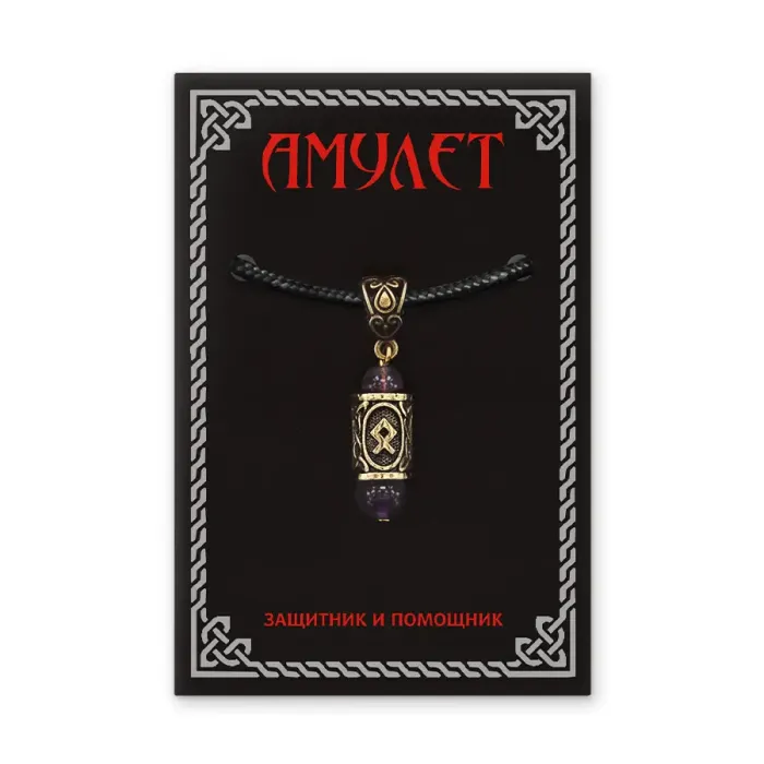 Кулон-амулет с руной Одал (Защита, развитие, достижение цели), аметист KULZ-11