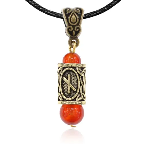 Кулон-амулет с руной Наутиз из натурального сердолика и бижутерного сплава.
