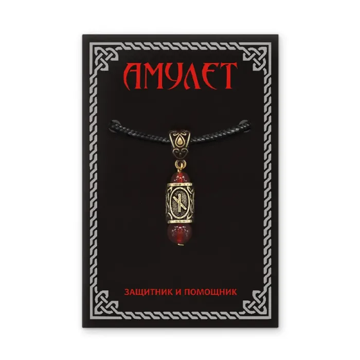 Кулон-амулет с руной Наутиз (Упорство, уверенность, достижение цели), сердолик KULZ-14