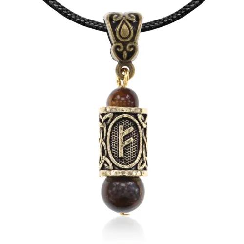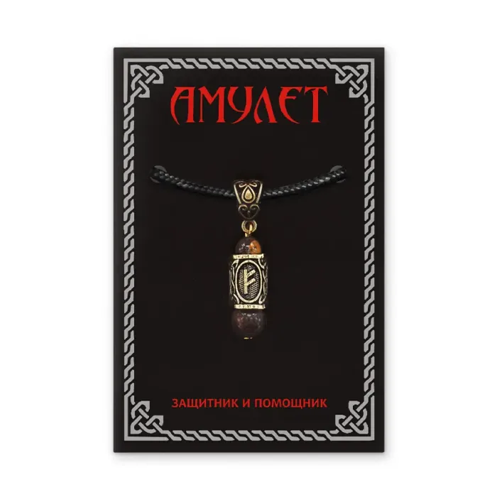 Кулон-амулет с руной Феху (Карьера, бизнес, богатство, любовь), тигровый глаз KULZ-16