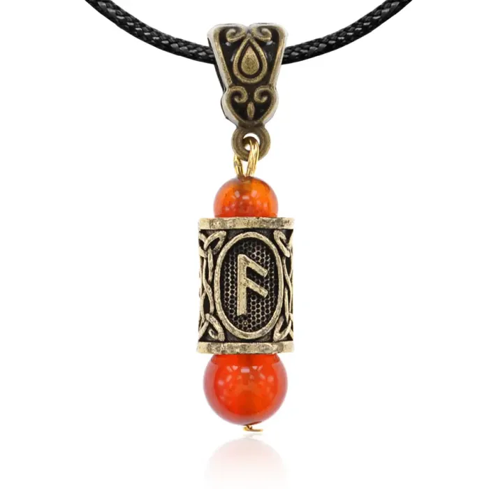 Кулон-амулет с руной Ансуз из натурального сердолика и бижутерного сплава.
