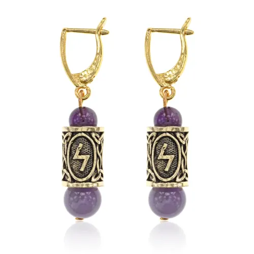Серьги-амулеты с руной Соулу (Сила, энергия, здоровье, успех, победа), аметист SERZ-01