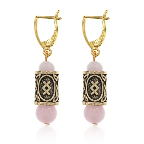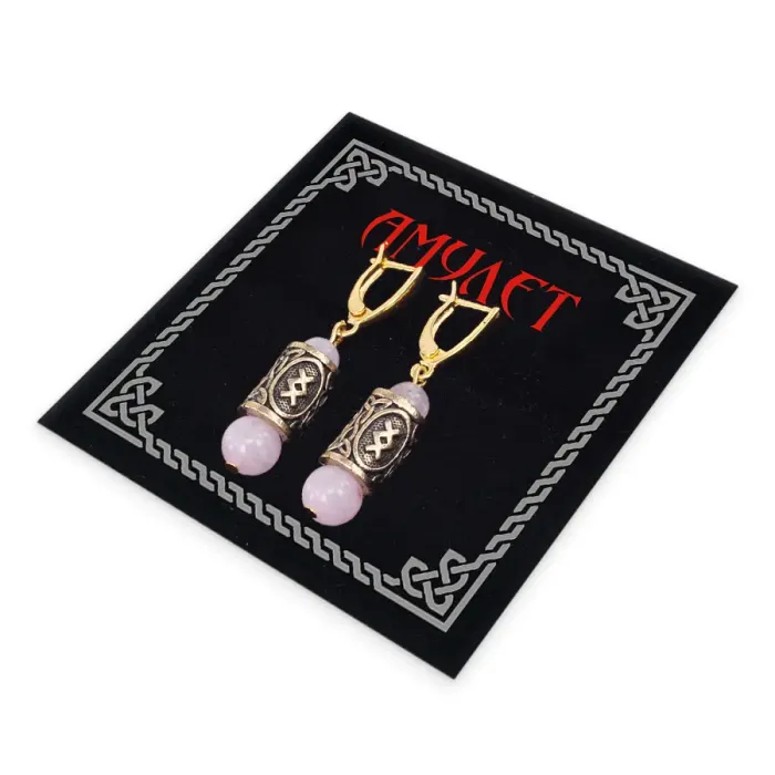 Серьги-амулеты с руной Ингуз (Любовь, творчество, отношения), розовый кварц SERZ-04