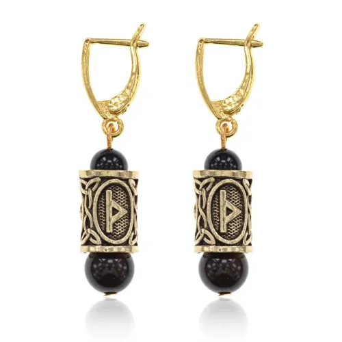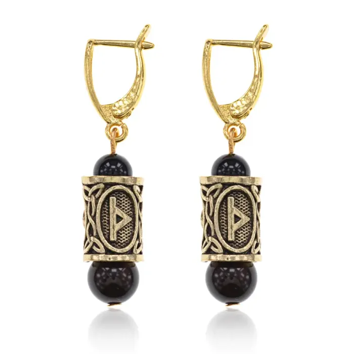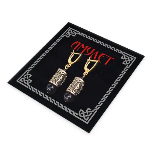 Серьги-амулеты с руной Турисаз (Успех в делах, защита, сексуальность), черный агат SERZ-08