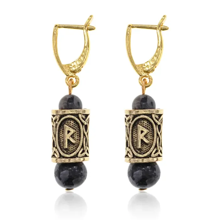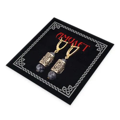 Серьги-амулеты с руной Райдо (Защита в пути, развитие, продвижение), лабрадор SERZ-09