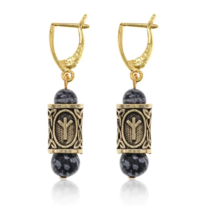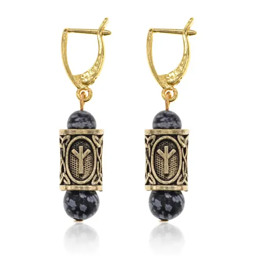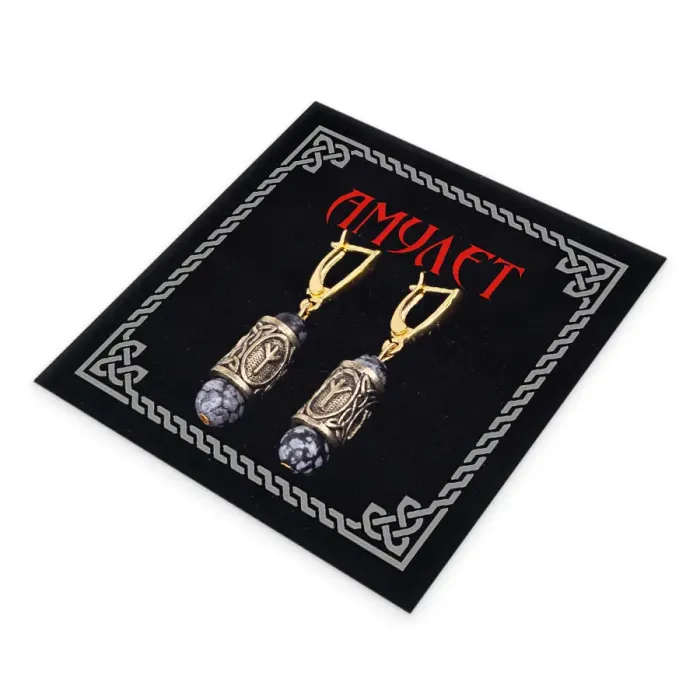 Серьги-амулеты с руной Альгиз (Защита от зла, сила, самоконтроль), обсидиан SERZ-15