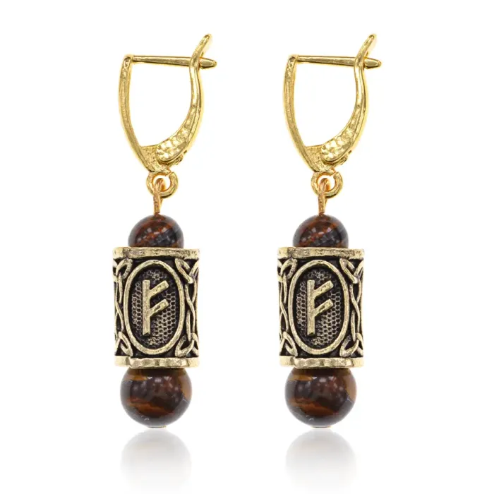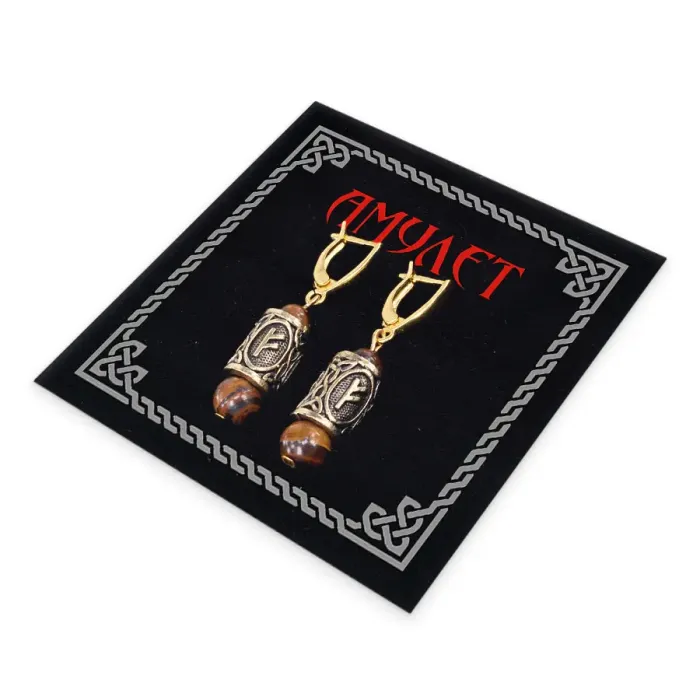 Серьги-амулеты с руной Феху (Карьера, бизнес, богатство, любовь), тигровый глаз SERZ-16