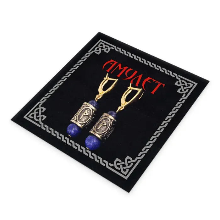 Серьги-амулеты с руной Вуньо (Радость, успех, заслуженная награда), лазурит SERZ-17