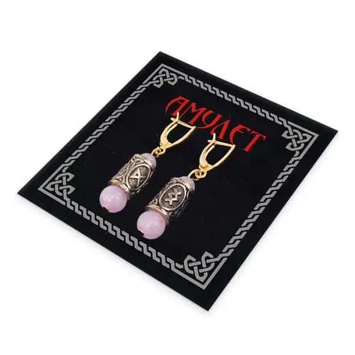 Серьги-амулеты с рунами Дагаз и Ингуз (Благополучие, здоровье, долголетие), розовый кварц SERZ-25
