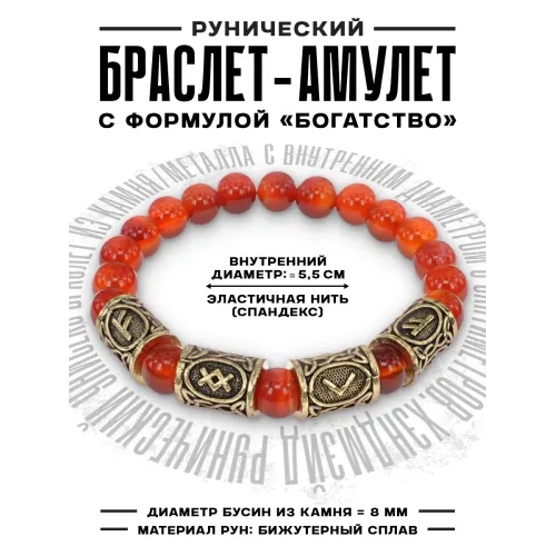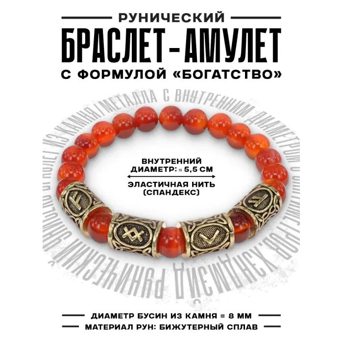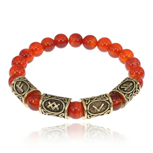 Рунический браслет Трудолюбие и богатство с нат.камнем Сердолик 8мм