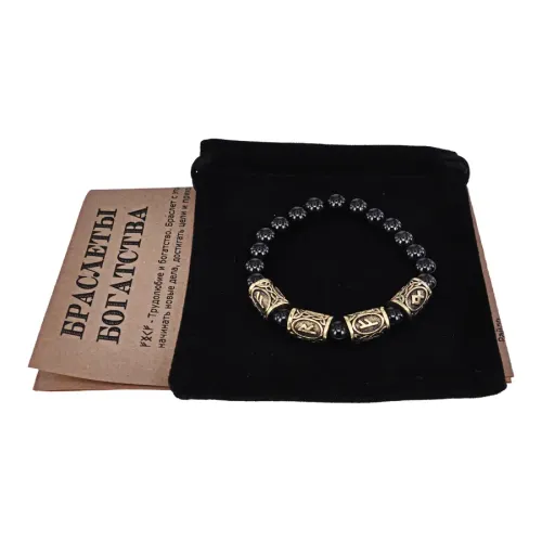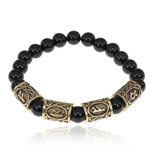 Рунический стрейч-браслет из бижутерного сплава с бусинами натурального чёрного агата.