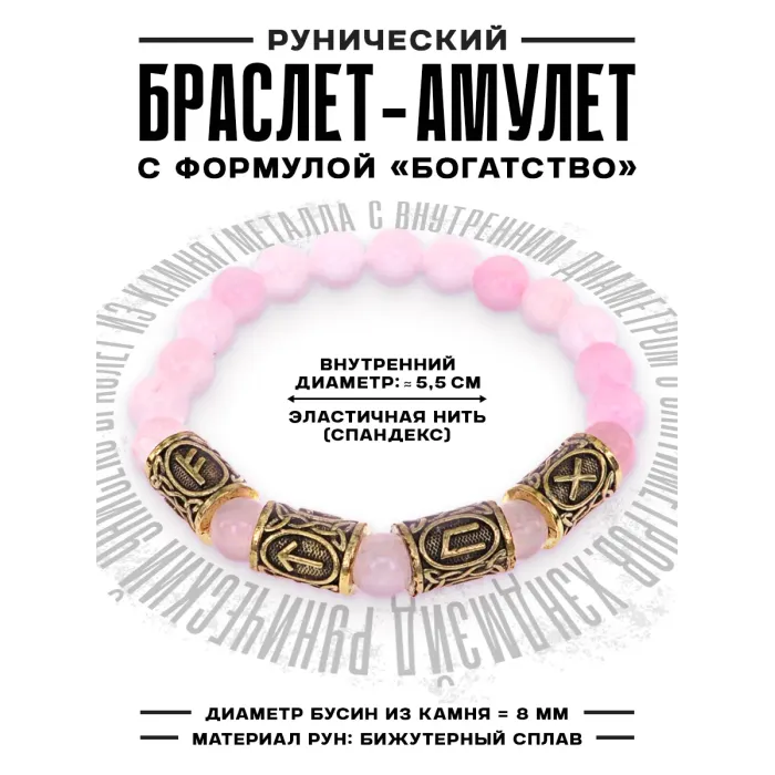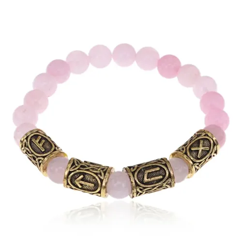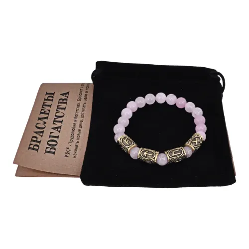 Рунический браслет Богатство и любовь с нат.камнем Розовый кварц 8мм BSRQ-11