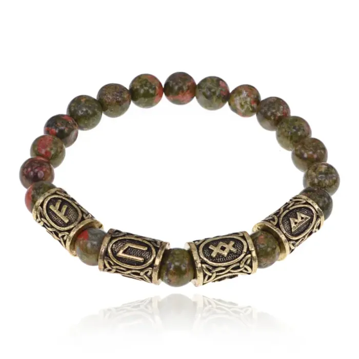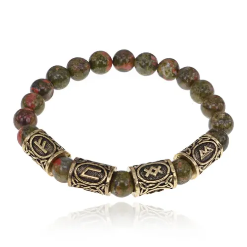 Рунический браслет Богатство и оздоровление с нат.камнем Унакит 8мм BSRQ-17